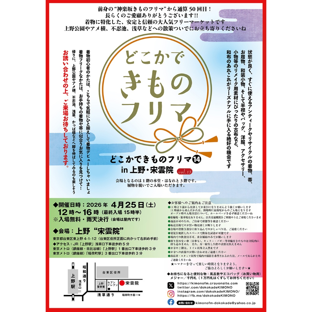 | (50)2026.4.25(土) | 上野・宋雲院 「どこかできものフリマ⑭ in 上野・宋雲院 vol.13」 |